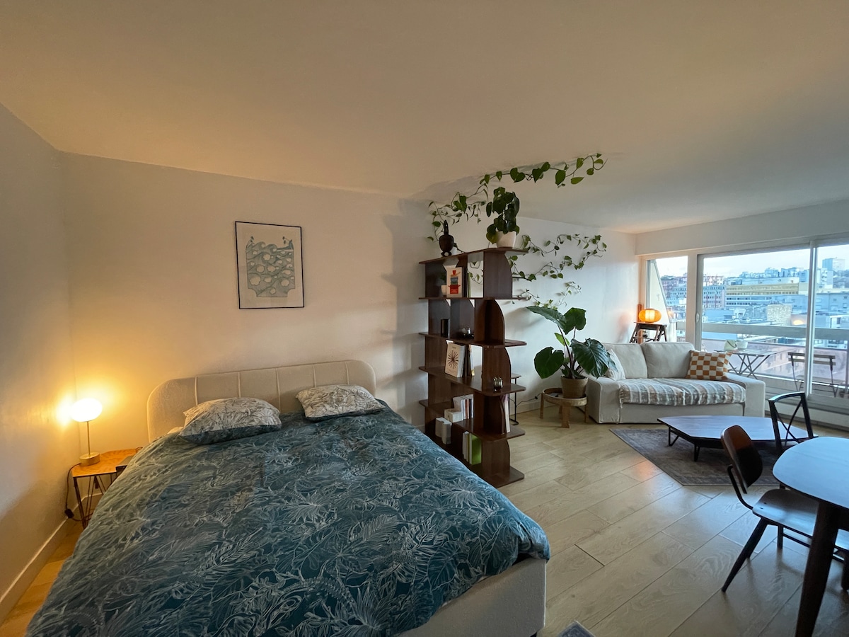 ★ Acogedor estudio en el piso 15 con vistas a la Torre Eiffel