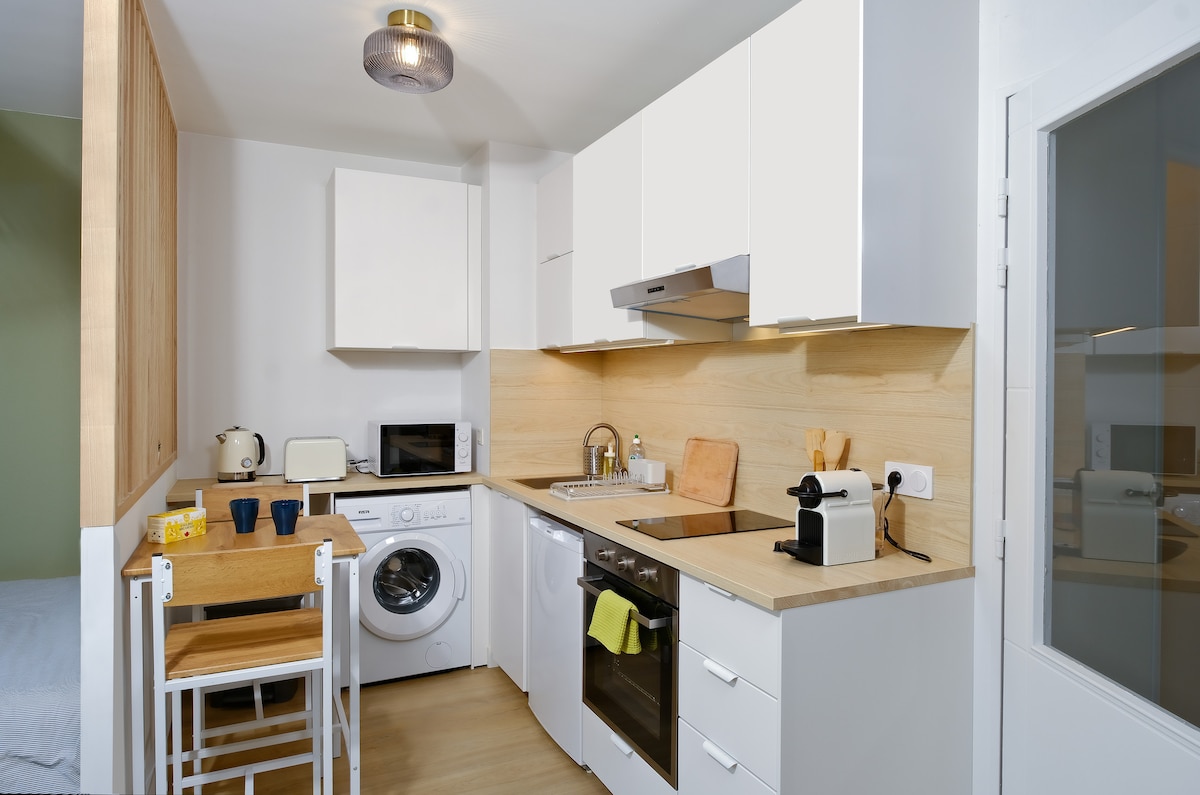 02/04/2025: ropa de cama nueva de alta calidad. Te daremos la bienvenida en un nuevo apartamento con aire acondicionado, un ambiente acogedor y un pequeño balcón privado. El apartamento ha sido completamente diseñado y decorado pensando en la comodidad de nuestros huéspedes, para que puedas disfrutar de una experiencia inolvidable durante tu estancia en Lyon 8ème. Relájate con calma y elegancia. Estarás cerca del Museo Tony Garnier, la Maison de la Danse, el famoso distrito de Gerland y a 5 minutos del centro de la ciudad y la Place Bellecour.