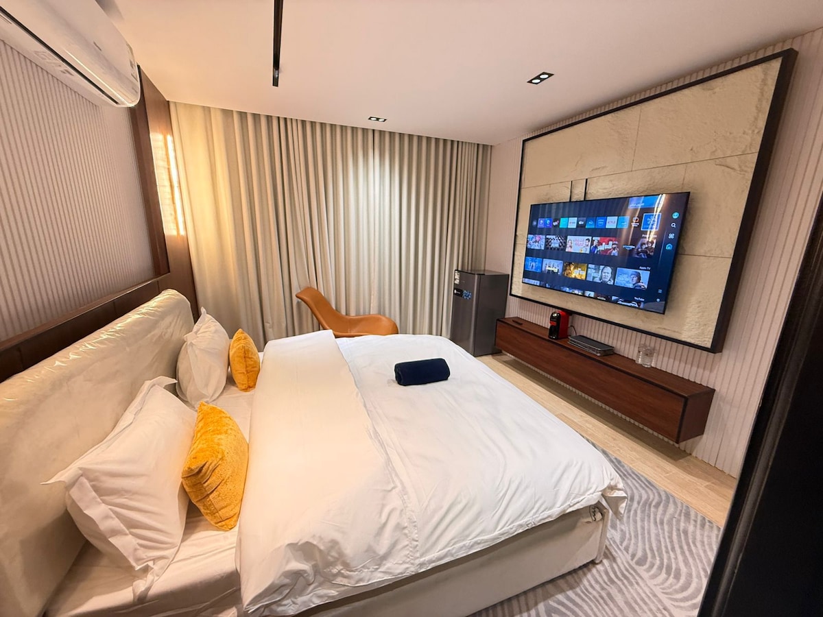 موقع مميز جدا. حولك جميع المطاعم والكافيهات وبدون ما تحتاج سياره أو مواصلات غرفه وصاله فاخره بجميع منافعها وخدمات ضيافه مميزه A very prime location — surrounded by all restaurants and cafés, with no need for a car or transportation. A luxurious apartment with all amenities and exceptional hospitality services.