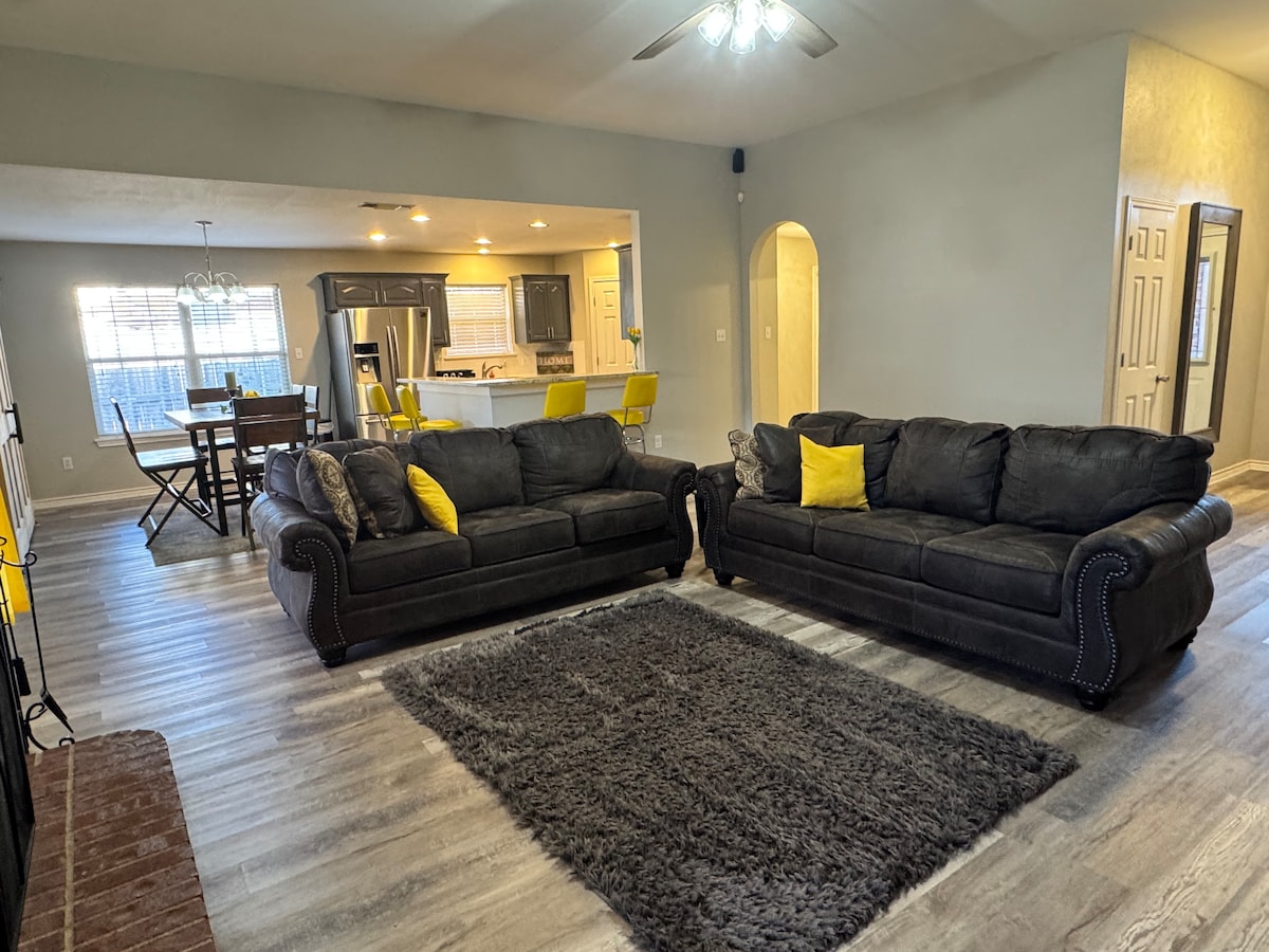 Home at Lawyers es una casa de 3 dormitorios y 2 baños que te hará sentir como en casa. Cuenta con una cama tamaño king, una cama de matrimonio y (2) literas individuales. La sala de estar tiene un televisor inteligente de 58 pulgadas y todos los dormitorios tienen televisores inteligentes de 50 pulgadas equipados con YouTubeTV, Netflix, Hulu y más. También tiene una cama plegable si es necesaria para una persona adicional. Se encuentra en el lado norte de la ciudad, en un barrio tranquilo y a pocos minutos del Centro de Exposiciones y del centro de Abilene. Tiene un garaje para dos coches y mucho aparcamiento disponible.