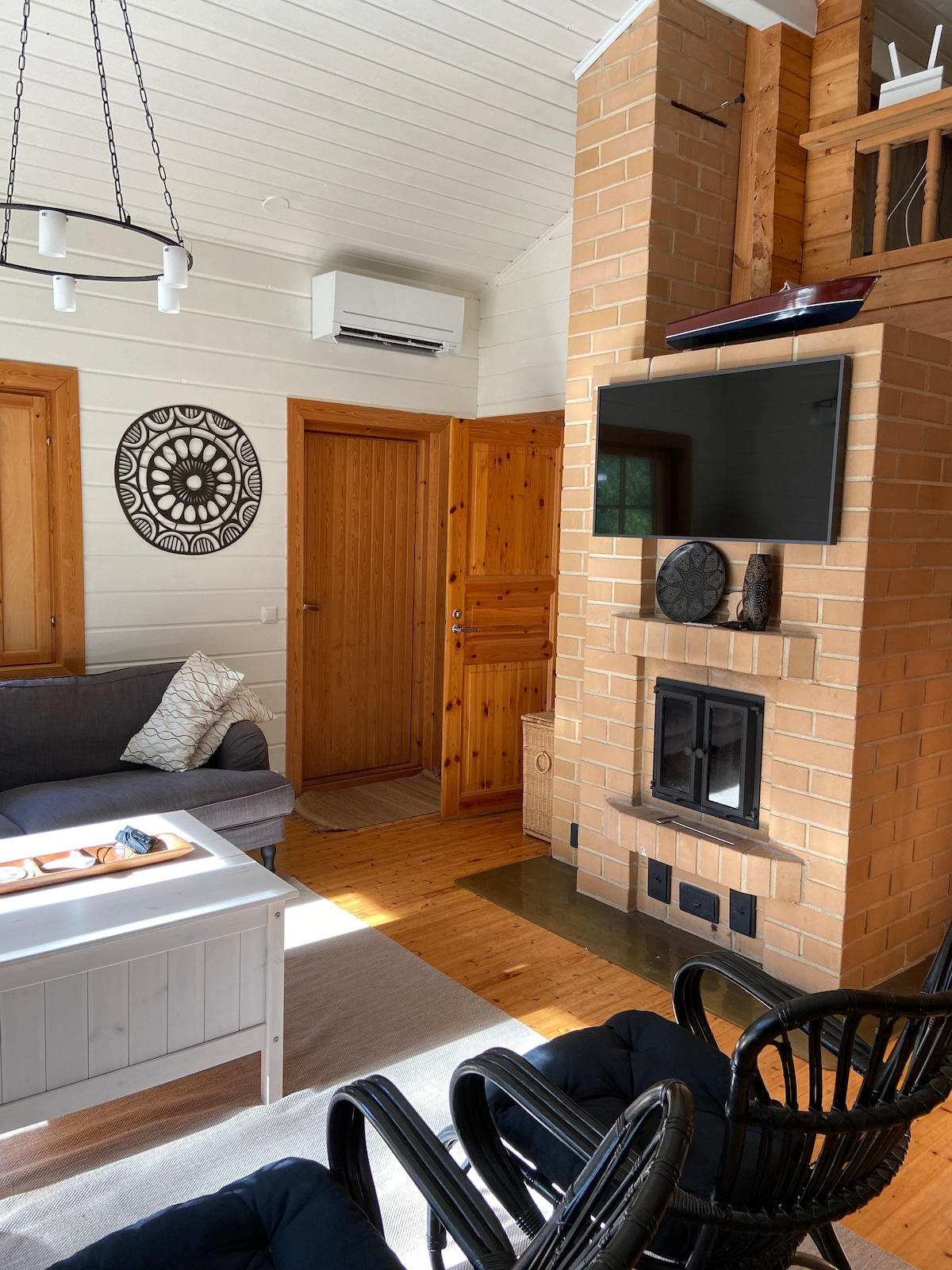 A cozy log house with Finnish forest spa experience. Peaceful, yet just a short drive from downtown restaurants, museums, and cruises. Full bathroom, air conditioning, outdoor and indoor saunas, hot tub. Bedroom with a double bed and a loft with two beds. Fully equipped kitchen, barbeque, fire pit, outdoor games, trails. Great for couples looking for getaway or small families. Within 10 min drive golf, beaches, boating, shop. Easy access with public busses. Private villa exclusively for guests.