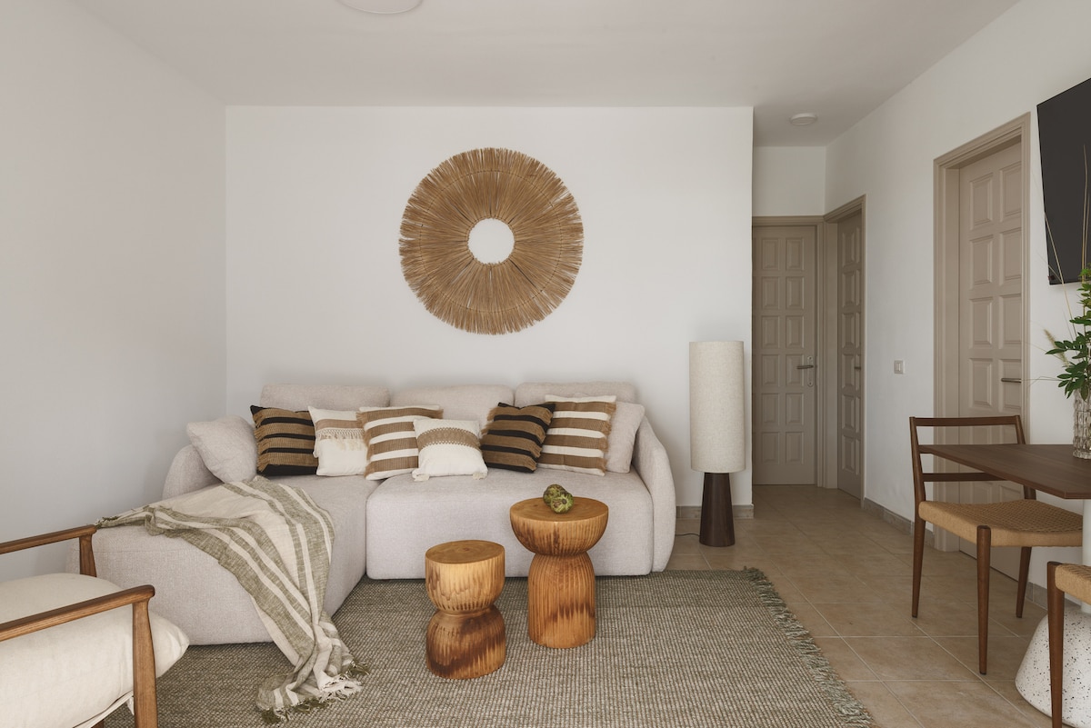 Por el momento, la piscina pequeña está cerrada por reformas. Debería abrir alrededor del 15/11/24. ¡La piscina más grande está abierta! El apartamento es luminoso, muy tranquilo y privado. Consta de un dormitorio, un baño, una sala de estar con cocina de planta abierta y una terraza. La terraza es el lugar donde quieres ver la puesta de sol después de un largo día de visitas turísticas y explorar la isla. Es realmente genial sentarse allí, disfrutar de la vista y relajarse. El apartamento es ideal para parejas o familias pequeñas.