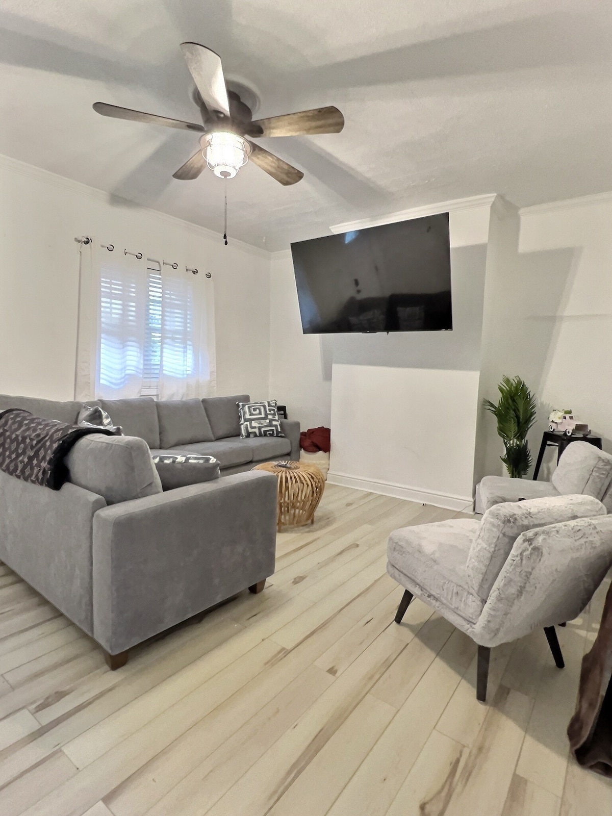 Welcome to our newly renovated home, located just a short 10 minute drive from downtown. Upon arrival, you'll be greeted with easy and hassle-free check-in, as you make your way down the stairway and onto the cozy porch. Step into the modern kitchen complete with brand new appliances, perfect for cooking up a delicious meal. Relax and unwind in the comfortable living room. Street parking. MUST do steps. Come make yourself at home in our inviting and updated space.