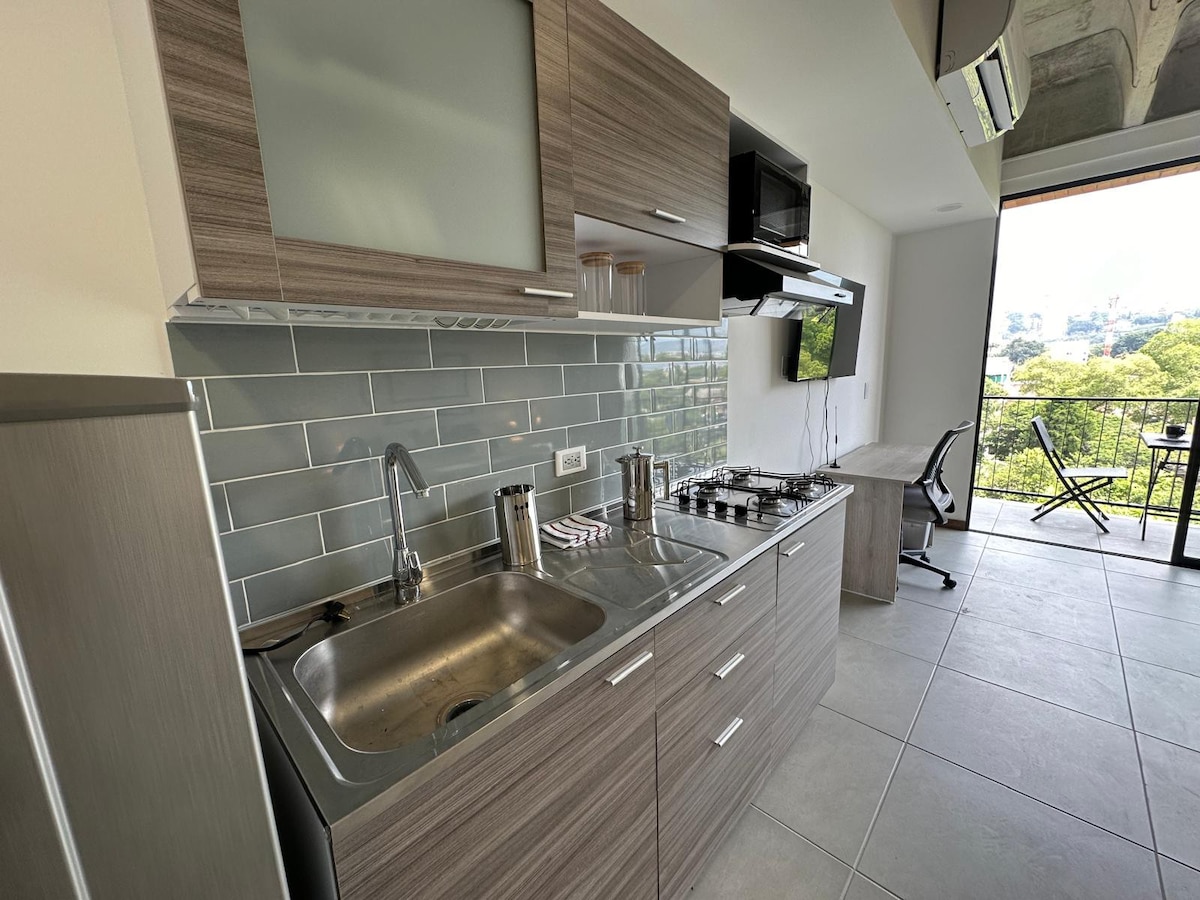 Estudio con Estilo, Terraza y AC en San Antonio