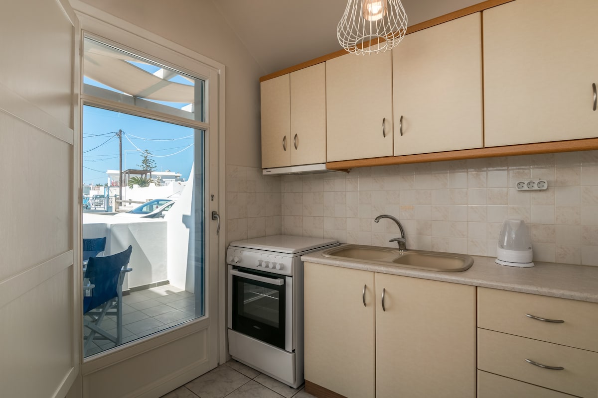 Christina Rooms se encuentra a 400 m de la hermosa playa de arena de Papikkinou con bandera azul y a solo 1 km del bullicioso centro de la ciudad (15 minutos a pie). Nuestra habitación de 20 metros cuadrados está equipada con nevera, TV y aire acondicionado. Hay 2 balcones (uno con escaleras y entrada) y algunas vistas al mar. El baño estaba reformado Hay un patio tradicional (no privado) con muchas flores y vistas al mar a lo lejos. ¡Estamos muy contentos de hacer que tu estancia en Christina Rooms sea cómoda e inolvidable!