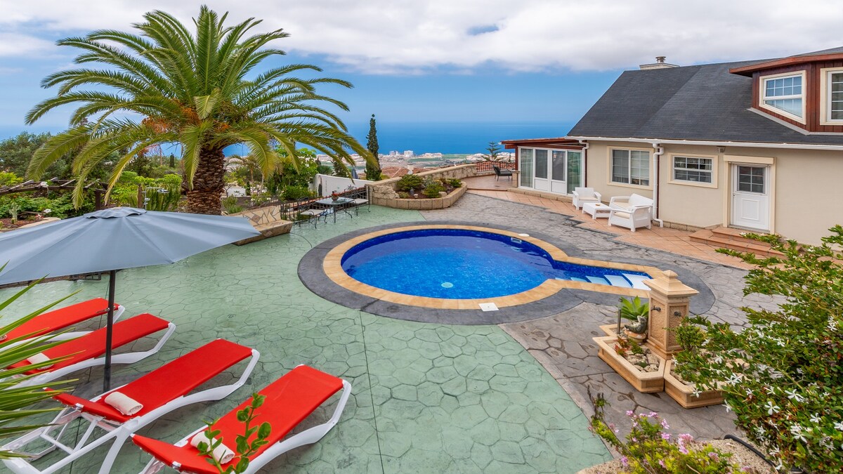 Hermosa casa de estilo canario con dos habitaciones recientemente renovadas con una gran terraza y una piscina con solárium y zona de relajación. La casa está en una zona tranquila con un ambiente rural, pero con la ventaja de estar a solo 15 minutos de la playa. La casa está en la cima de una colina y tiene una vista panorámica maravillosa y limpia hacia el mar. Las puestas de sol son magníficas con la isla de La Gomera de fondo. Sleep House Tenerife en los canales de medios I-G