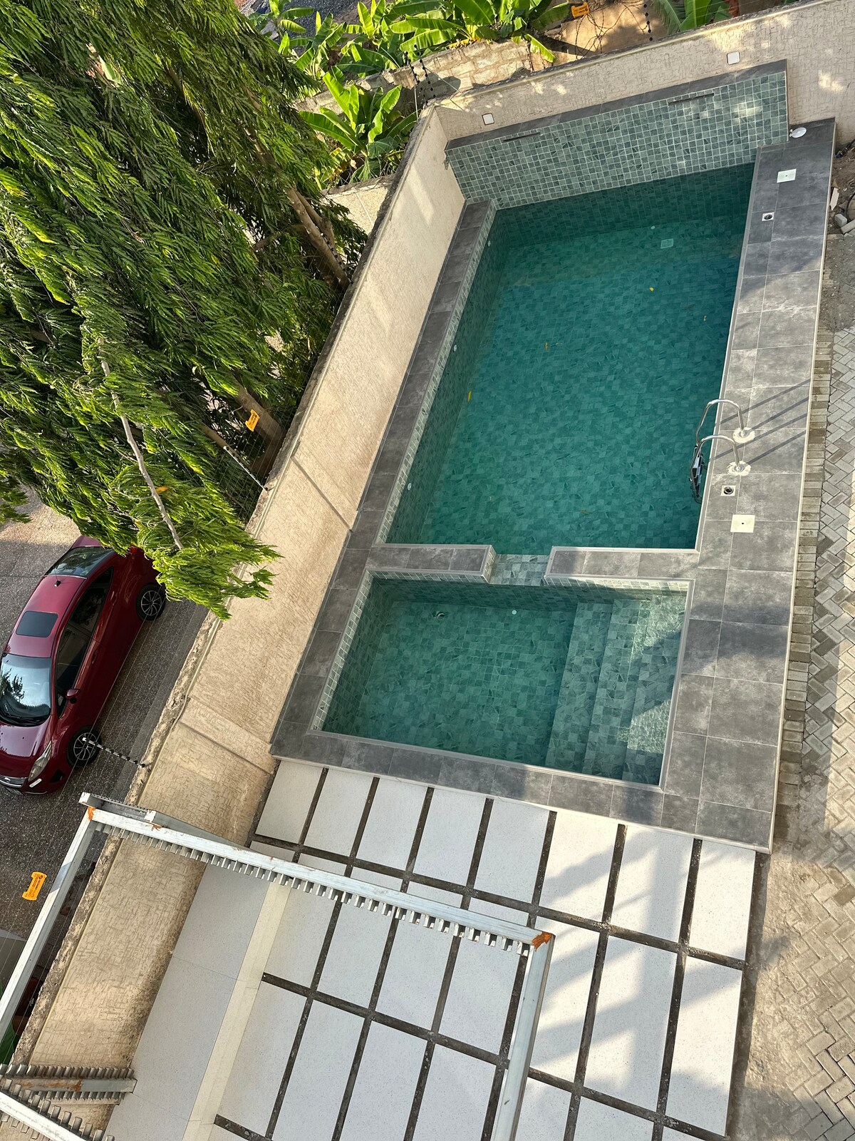 Welcome to your private resort in Accra. Nubian Villa offers a private infinity pool, a 36-jet hot tub with its own bar and hanging chairs, a fully equipped gym, and curated chef services — all within a secure, luxury 4-bedroom residence. Designed for families, executives, and discerning travelers, the villa combines privacy, comfort, and seamless service — including airport pickup and a standby silent generator for uninterrupted power.