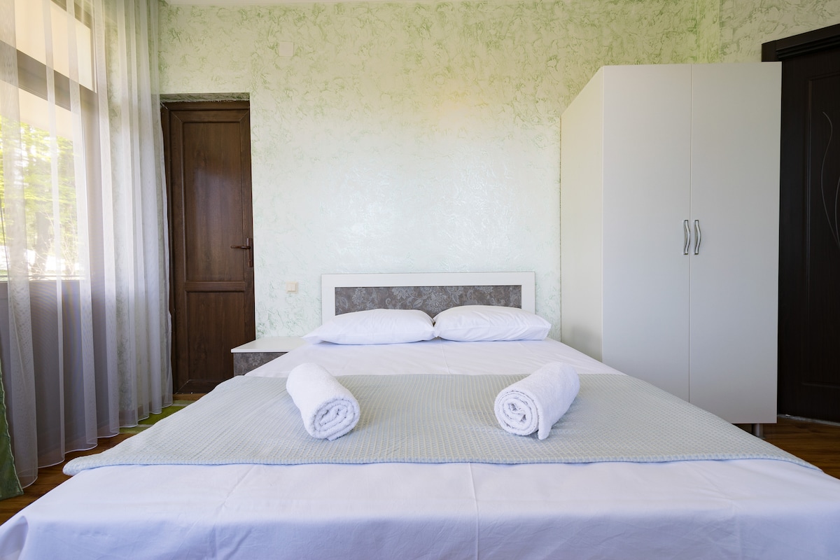 - Nuestra casa tiene 12 habitaciones cómodas, limpias y acogedoras (por esta razón, se han creado 7 anuncios más idénticos en el sitio web de Airbnb, las habitaciones difieren solo en el piso de la habitación, las vistas al mar y a la ciudad, los colores de las cortinas y las paredes. - Nuestra casa está en el territorio del cabo verde, a 7 km del centro de Batumi. Te encantará que la casa sea completamente nueva, tenemos una limpieza perfecta, habitaciones frescas, acogedoras y nuevas.