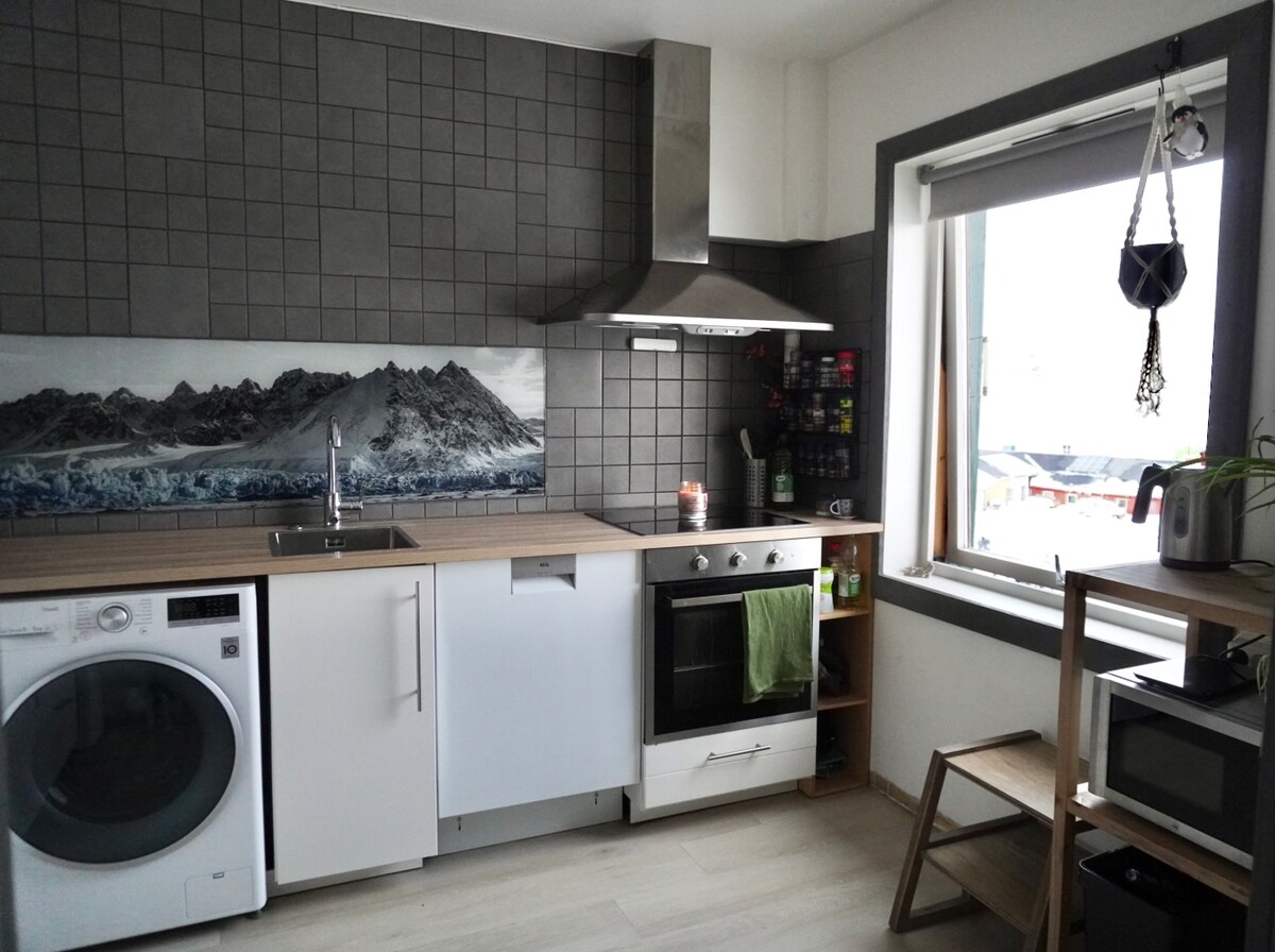 Te damos la bienvenida a un escondite tranquilo y acogedor a 78 grados al norte. El departamento está ubicado en un vecindario tranquilo en una colina, con vista al fiordo y las montañas. La playa y el puerto están cerca, y el centro de la ciudad está a unos 7 minutos a pie. Con muchos libros, juegos y un televisor inteligente, el apartamento cuenta con todo lo necesario para una recarga tranquila después de un día de aventura en el paisaje salvaje del Ártico.