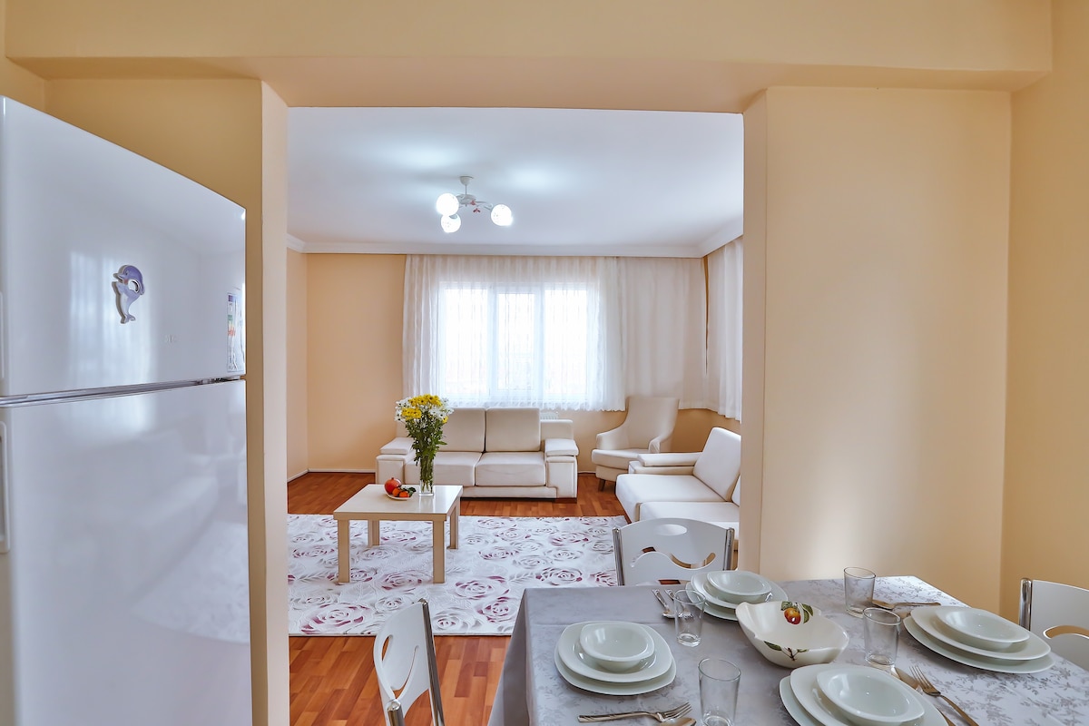 Disfruta de una experiencia elegante en este espacio céntrico. Ubicado cerca del centro comercial Iyaş de Isparta, todas tus necesidades están a pocos pasos de este apartamento. En nuestro apartamento puedes encontrar todo lo que necesitas a diario; cocina, wifi, lavadora, secador de pelo, TV y mucho más. Nuestro apartamento tiene un dormitorio, un salón, una sala de estar, cocina y baño. Proporcionamos equipo para satisfacer tus necesidades básicas en la cocina