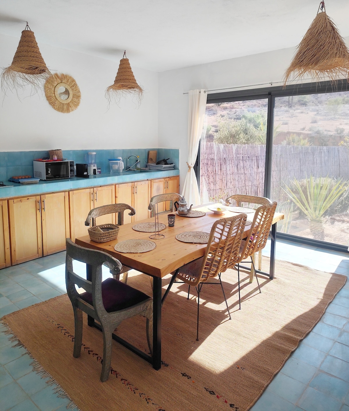 Discover a spacious, light-filled sanctuary in the heart of Tamraght. Perfect for groups or families, this entire apartment blends boutique comfort with total independence. Featuring a fully equipped kitchen, meticulous cleaning, and a serene atmosphere, every detail is designed for rest. Enjoy breathtaking views of the Atlantic and access our shared rooftop for yoga or a sunset coffee. The perfect balance between privacy and the communal spirit of travel.