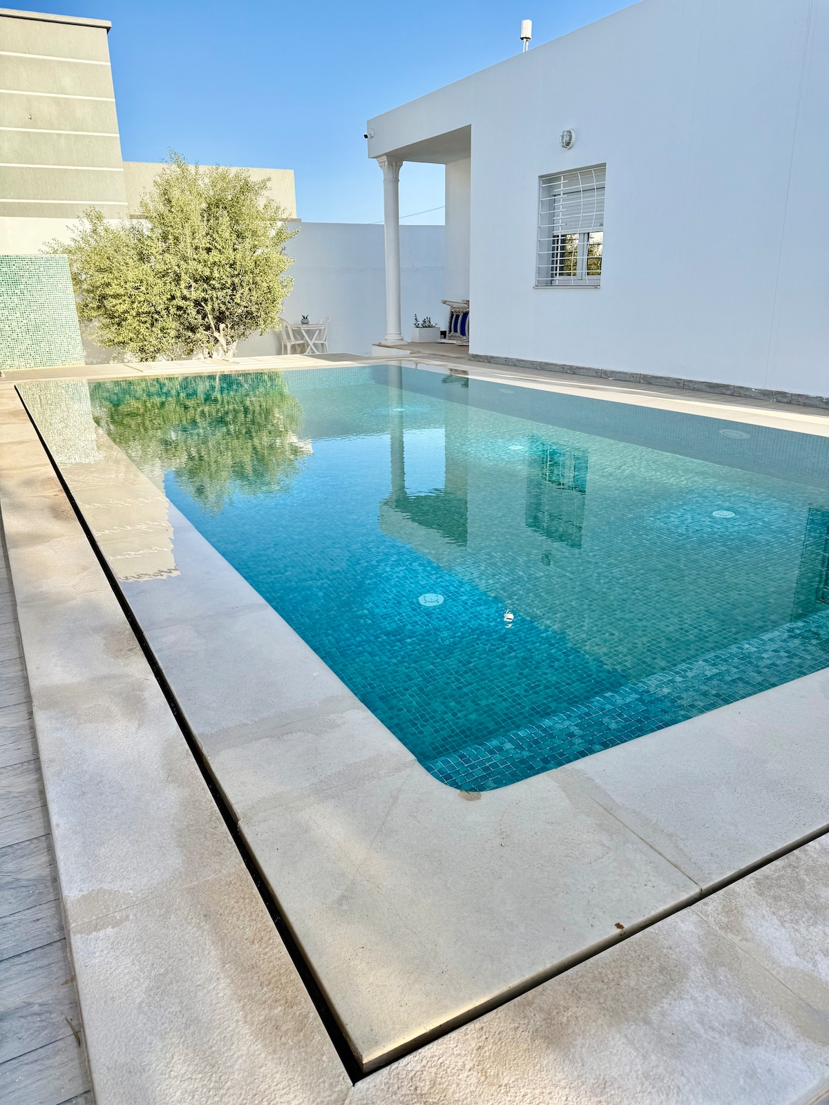 Enjoy a true getaway in Djerba, whether you’re traveling as a couple, with friends, with family, or even solo. Everything is designed for relaxing, reconnecting, and making the most of every moment in a modern, private villa with no overlooking neighbors. The house offers 3 bedrooms plus an independent studio for 2 people (4 sleeping areas in total), 3 bathrooms, a private pool, and two kitchens to enjoy indoor outdoor living: one inside and one outside, perfect for summer evenings.