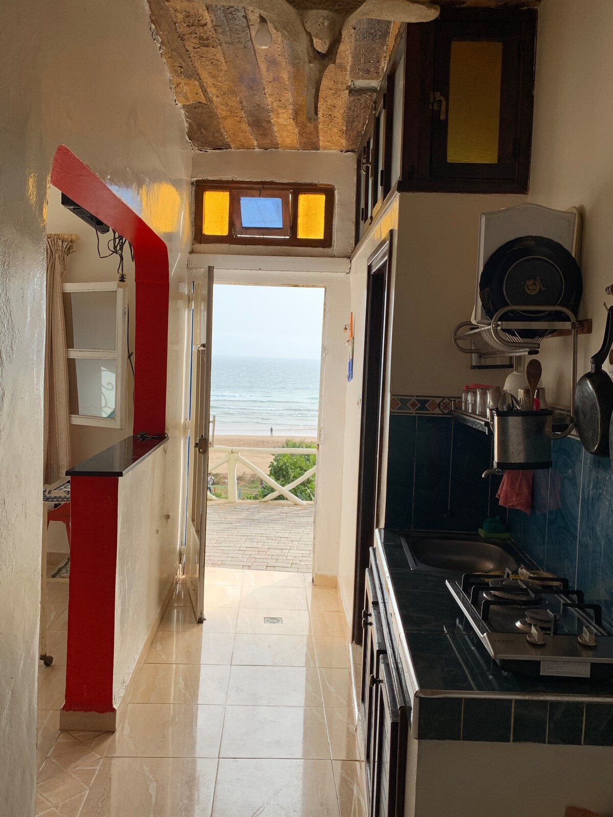 Nestled in the colorful village of Aghroud, where ocean meets mountains, RosyPlage is a true beachfront escape. Life here flows with the waves, golden sunsets, and quiet rhythms of a preserved coast. Every level opens to panoramic ocean views, with direct beach access and a surf spot just in front. A warm Moroccan lounge, sunlit terraces, and a rooftop made for sunsets and yoga. An authentic home by the sea. 4 levels with stairs (not suitable for kids or reduced mobility). Entrance camera