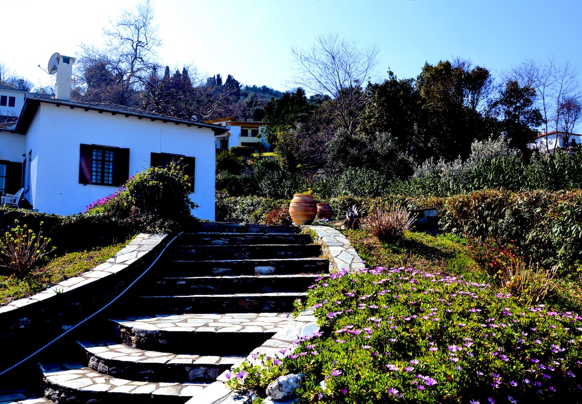 Zelis In Pelion Greece está en un lugar sereno en Pelion, hasta un punto en el que los huéspedes tienen una vista panorámica del golfo de Pagasitikos, disfrutando de puestas de sol únicas. Desde la terraza del alojamiento y su hermoso patio verde disfrutarás de tu desayuno o comida contemplando el mar y al mismo tiempo el encantador Pelion, con el sonido de los ruiseñores y el agua corriendo en nuestro arroyo. El encanto también es por la noche bajo el cielo con las estrellas.