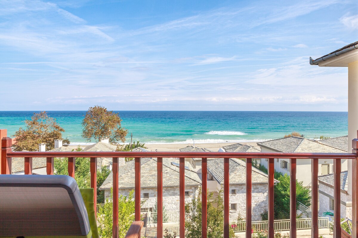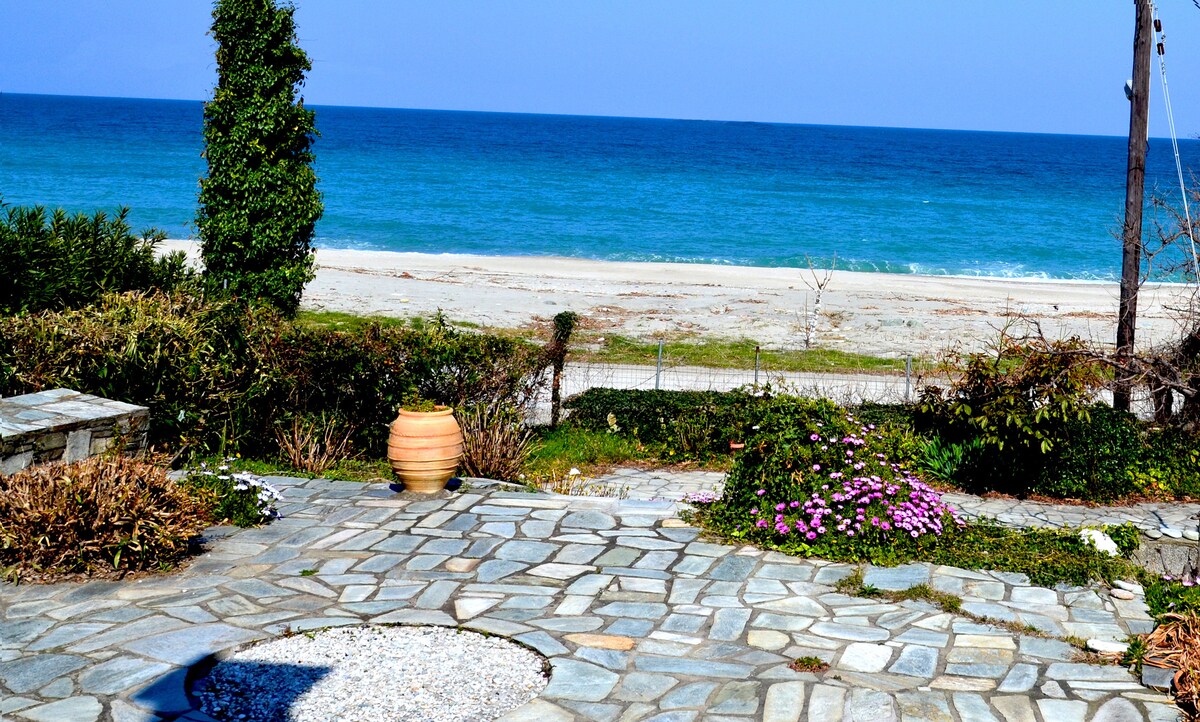 Relax and enjoy the sea all day long in this 2 bedroom fully equipped Beachfront House ideal for groups and families with kids! This is a true beach house as it is located directly on the sand and you're just steps from the beach! You can literally live in your bathing suit throughout your whole vacation here. The exposed stone in the exterior and wood furnishings in the interior reflects the original Pelion's architecture and offers a unique homestay experience.