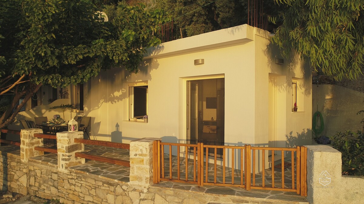A country stone house gives you the opportunity of privacy and relaxation. Surrounded by olive trees and a breathtaking view of Aegean sea. Petit Stonehouse is five minutes drive from Mulopotanos Beach and five mins from Tsagarada village. Also available BBQ-Air cooler - fireplace-Tv-Hot water