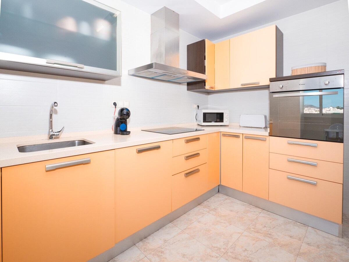 Vivienda en primera línea con una terraza privada de 120 m² frente al Mediterráneo y acceso directo al paseo marítimo, perfecta para desayunos, comidas al aire libre y relax. En planta baja elevada, ofrece un acceso cómodo y práctico, ideal para movilidad reducida. Es perfecta para estancias medias y teletrabajo por su internet extraordinario, y en invierno es ideal para clientes extranjeros.