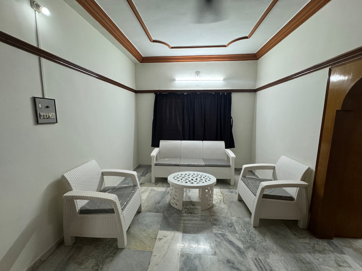 Este apartamento es un dormitorio principal y un pequeño dormitorio equipado con cocina totalmente utilitaria, estudio y sala de estar está disponible para una estancia tranquila y a largo plazo. También hay disponible espacio adicional para ropa de cama y equipo disponible. A 5 km del aeropuerto. A 1 km de 2 centros comerciales separados. Mercado local de 2 km A 1,5 km es un hospital de múltiples especialidades