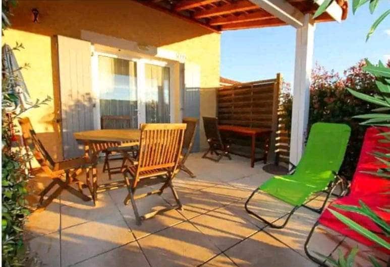 Alojamiento de 34 m2 ideal para unas vacaciones en familia. En el campo de la «masía de viñas». Salón con cocina, cuarto de baño, amplio dormitorio que se puede dividir con una cortina creando 2 rincones de noche. Bonita terraza sin vecinos enfrente. 1 hermosa piscina soleada y una piscina climatizada durante todo el año. Numerosas instalaciones (pista de tenis, tenis de mesa, pistas de petanca, restaurante/bar en verano, etc.) Estacionamiento gratuito en la vivienda. A 25 minutos del mar.