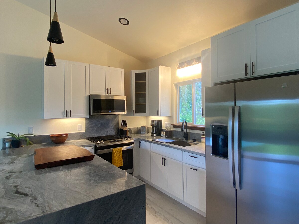 Experimenta la magia de la isla de Hawái en esta pequeña casa recién construida, enclavada en una exuberante selva tropical. A solo 25 minutos del aeropuerto de Hilo y a 45 minutos del Parque Nacional de los Volcanes, es la combinación perfecta de tranquilidad y comodidad. Cocina en la exclusiva cocina con mosquitero, refréscate en la espaciosa ducha de efecto lluvia y relájate con una película en la pantalla del proyector en una lujosa cama tamaño king. ¡Tu escapada perfecta a la selva tropical te espera!