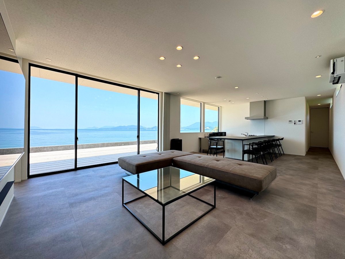 小豆島町の静かな海辺に建つ一軒家です。 海と夕陽を眺めて黄昏れる為だけに建てた家です。その為テラスの階段の段数が多く大変申し訳ございませんが決してバリアフリーとは呼べません。(荷物のお手伝い等出来るだけのことは対応させていただきます) ですが、高いテラスを登った先には瀬戸内のキラキラ輝く穏やかできれいな海と毎日顔を変える茜色の夕空が待っています。 是非、時間を忘れ非日常をご堪能ください。 室内にはテラスの階段を登って入ります。バリアフリーではありません。 小さなお子様か階段を登り降りする際は必ず大人の方がお付き添いください。 また、雨の日は階段が多い為ご不便をかけるかもしれません。 また、宿前の道路は舗装されていません。 ご不便をかけるかもしれませんが、ご了承下さい。 宿の周りは自然が多いため、どうしても虫がでます。窓や扉の開閉時に虫が一緒に入ることがあります。(特に夜は宿の明かりに虫が集まります)大変申し訳ございませんが、虫が苦手な方は宿泊をご遠慮ください。