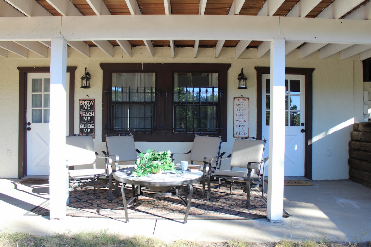 Acomódate en la suite privada Stone Falcon de 528 pies cuadrados que incluye cocina pequeña, sala de estar, dormitorio, baño y sala de estar exterior con vista a Pikes Peak, todo a pocos minutos de la Academia de la Fuerza Aérea, el Jardín de los Dioses y el Bosque Negro. ¡Disfruta de todos los servicios de la ciudad en un terreno de un acre y ni siquiera sabrás que estás en medio de una bulliciosa ciudad! Permiso n.º A-STRP-25-0058