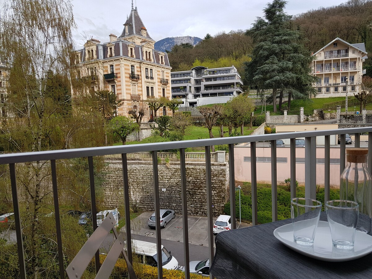 Estudio totalmente equipado, muy acogedor, tranquilo, luminoso, con una hermosa vista del Revard y un edificio protegido. Se proporciona una plaza de estacionamiento privada. Situado a 8 minutos a pie del centro de la ciudad, una parada de autobús a 5 minutos también permite llegar a la orilla del lago o a las Termas. Además, tendrás acceso a la piscina de la copropiedad durante los períodos de verano, así como acceso durante todo el año a la pista de tenis. El apartamento ofrece wifi.
