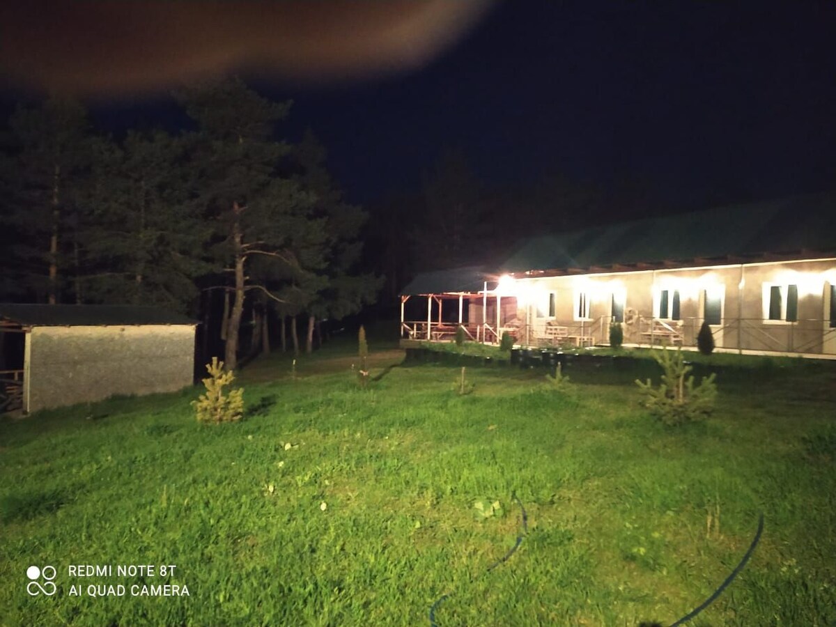 podrás relajarte con tu familia en este lugar tranquilo. La casa de huéspedes consta de tres dormitorios con baño privado y una cocina compartida. El patio cuenta con una zona de juegos para niños (masa, tobogán, columpios, hamacas y una piscina enmarcada). El patio tiene una zona de barbacoa. También hay un comedor exterior. El huésped puede disfrutar del bosque y las vistas a las montañas. Puedes disfrutar de las hipnofinas tradicionales. #Conoce el amanecer con nosotros❤️