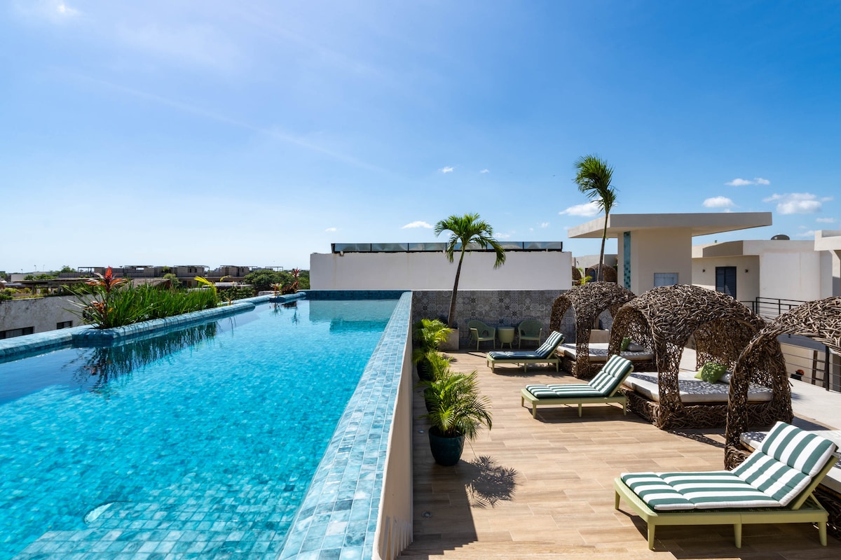 ¡Loft en la selva con piscina, cerca de la playa, centro y cenotes!