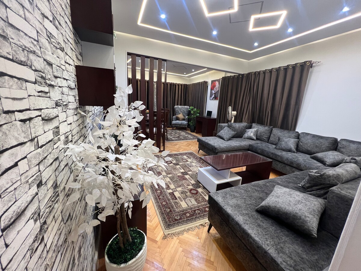 Descubre El Cairo desde una casa espaciosa y lujosa situada en el corazón de la ciudad, justo enfrente del emblemático Museo de la Civilización. Este elegante apartamento cuenta con muebles de alta gama, un diseño abierto y está a solo unos minutos de las principales atracciones, tiendas y restaurantes. Perfecto para familias o viajeros que buscan comodidad y estilo en una ubicación privilegiada. Disfruta del lujo moderno y el encanto histórico a tu puerta.