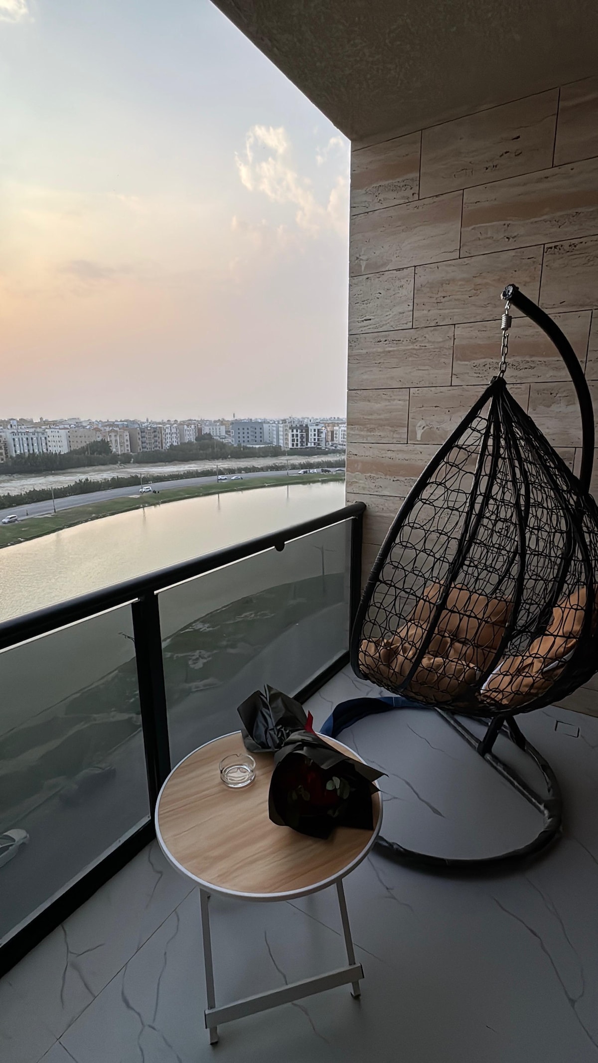 Disfruta de una estancia cómoda en un apartamento elegante con unas vistas impresionantes del lago. Tiene un dormitorio espacioso con una gran ventana e iluminación natural, y una televisión inteligente con suscripciones a Netflix y Shahid. El salón también tiene cómodos asientos y otro televisor inteligente para más entretenimiento. La cocina está totalmente equipada con todo lo que necesitas: microondas, cafetera, nevera, hervidor y lavadora. Para los amantes del entretenimiento, hay una sala de juegos dedicada con una mesa de hockey adecuada para amigos y familiares El apartamento es luminoso, tranquilo y perfecto para descansar o trabajar, con un diseño moderno y total privacidad.