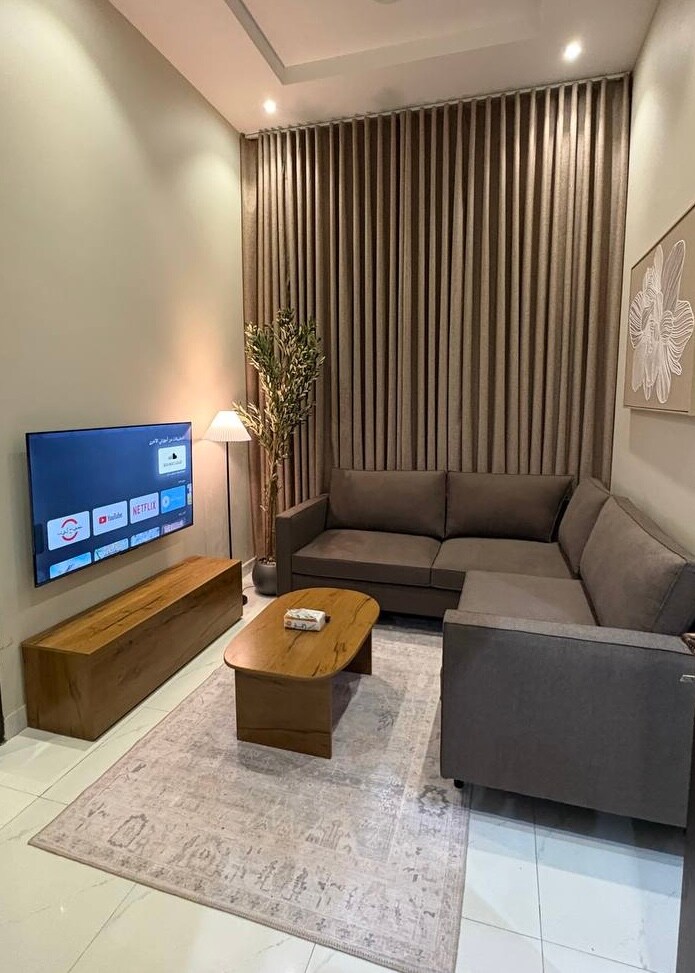 شقة أنيقة وعملية دخول ذاتي استمتع بإقامة هادئة ومريحة ، مناسبة للعائلات والأفراد، وتقع في موقع مميز قريب من الخدمات ، نظافة وتعقيم قبل كل ضيف قريبة من المطاعم، المقاهي، الأسواق والخدمات الأساسية. الديكور عصري، السرير مريح، والتلفزيون 75 بوصة! وفيه ركن قهوة وضيافة يفتح النفس والموقع؟ هادئ وقريب من كل شي ، وكل اللي تحتاجه. والمواقف متوفرة قدام الباب مناسبة جداً لرحلات العمل أو الإقامات القصيرة. احجز واستمتع بتجربة بسيطة ومريحة!