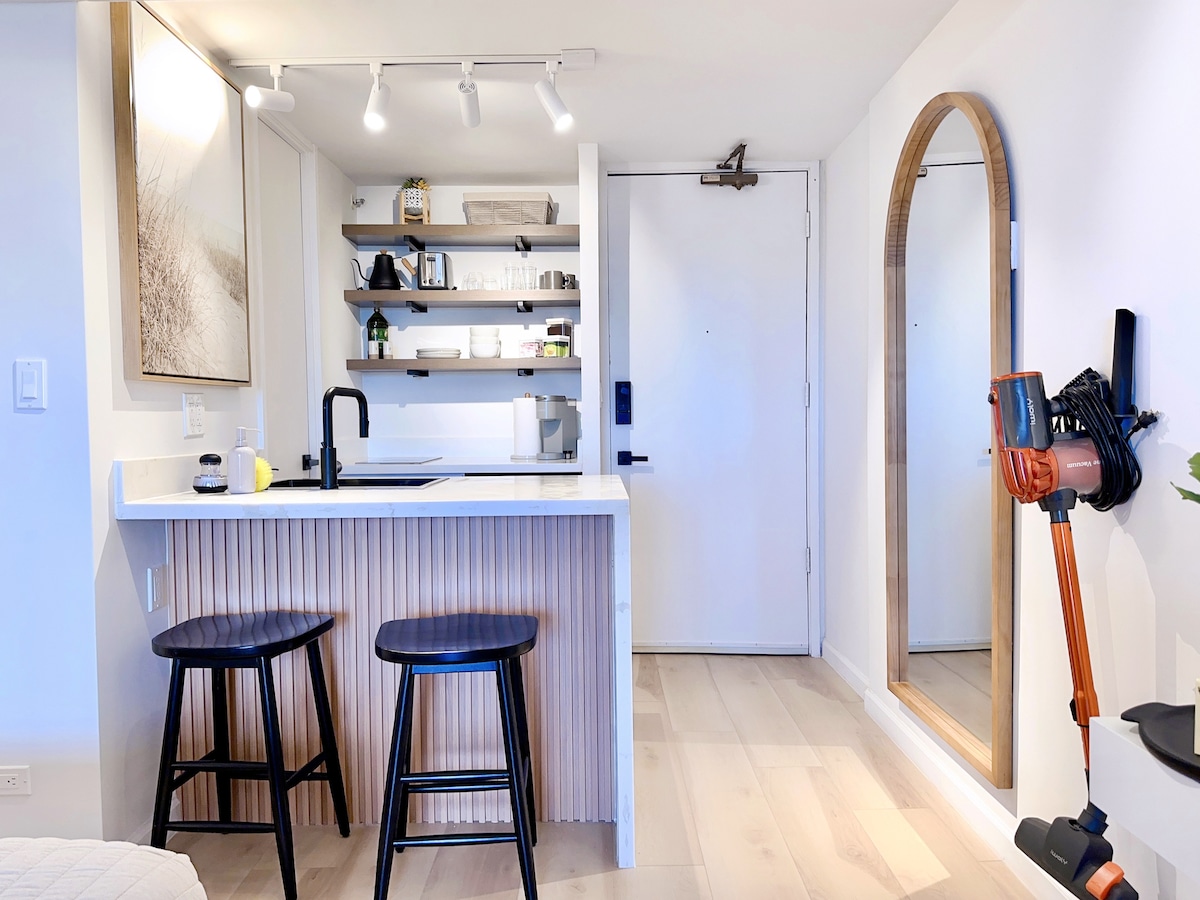 ¡Esta espectacular suite estudio, impresionantemente renovada, se encuentra en Seaside Ave, en el centro de Waikiki! Relájate en una cama tamaño king grande, TV HD4K de 65 pulgadas y disfruta de una refrigeración tranquila y cómoda con un nuevo sistema de aire acondicionado dividido. Utiliza la cocina completa para preparar una comida casera y disfruta de la brisa fresca hawaiana en tu propio balcón privado. Bellamente amueblado con acabados modernos y lujosos, este apartamento es la opción perfecta para parejas y pequeños grupos de viaje.