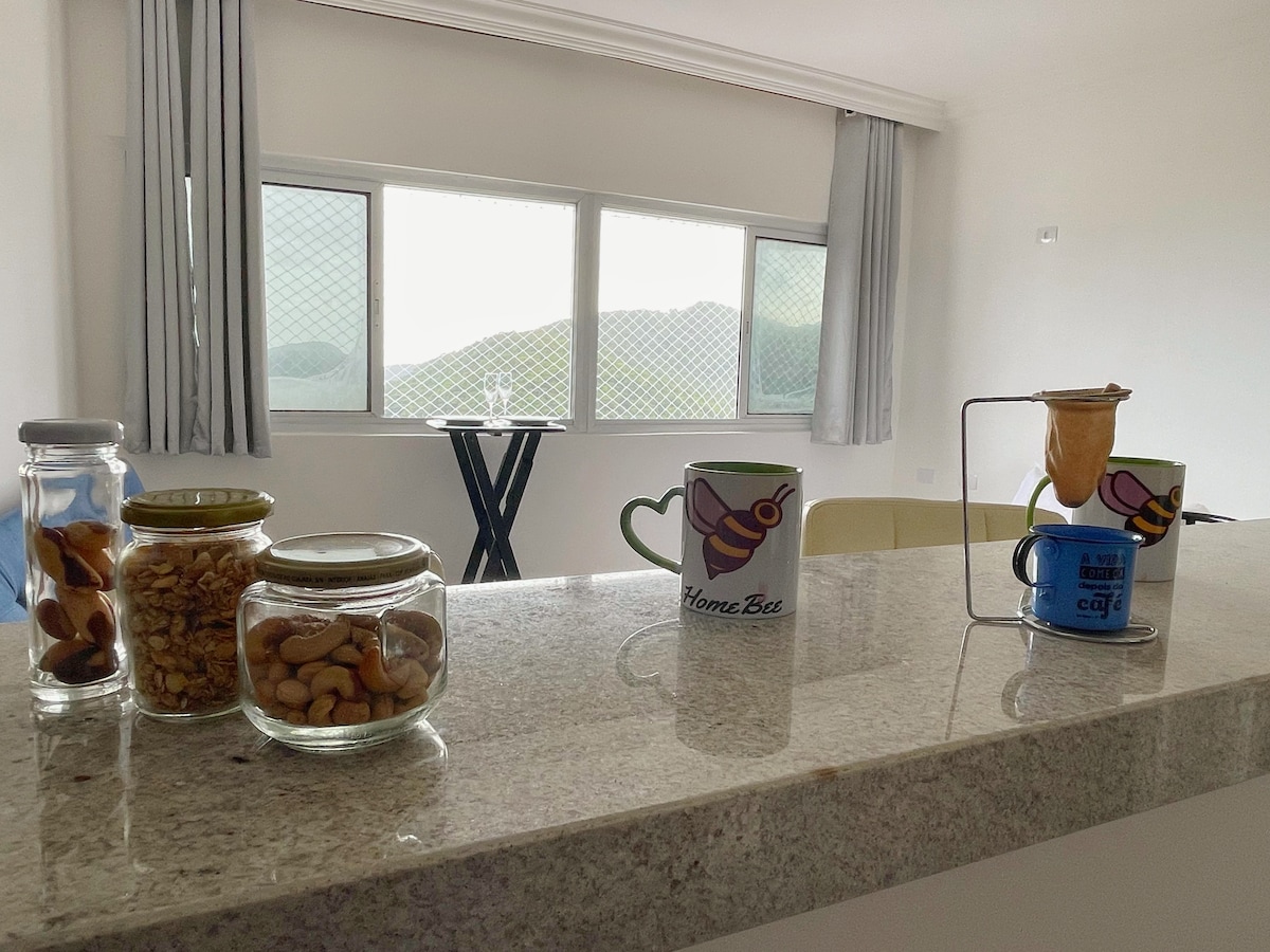 Viva momentos inolvidables en este lugar único e ideal para parejas con o sin hijos. La mejor vista de la costa de São Paulo. Estudio de 34 m², ubicado en la cima de la Isla Porchat, con vista al mar. Cocina completa para que no tengas que gastar fuera. - Wi-Fi. - Self check-in. - Aire acondicionado split de 24000 Btus. - Sábanas y toallas - Manta. - Garaje en la propiedad. - 1 cama. - Enchufes de 220V - Secador de pelo. - Cocina de 4 fuegos - Airfryer - Microondas. - MERCADO EN EL CONDOMINIO.