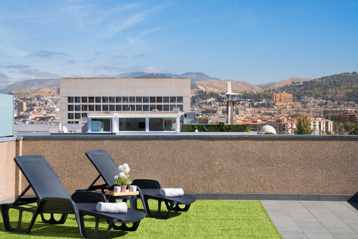 Os presentamos este increible ático con una terraza con unas vistas de infarto, en la que tomar el sol durante todo el año observando la ciudad y las preciosas vistas a Sierra Nevada. Este apartamento de alto standing cuenta con detalles como gimnasio (de uso compartido), terraza con solarium, 3 dormitorios y 2 baños para la comodidad de hasta 6 huéspedes, así como por supuesto una amplia plaza de parking incluida en cada reserva gratuitamente. Además cuenta con piscina (abierta en verano)