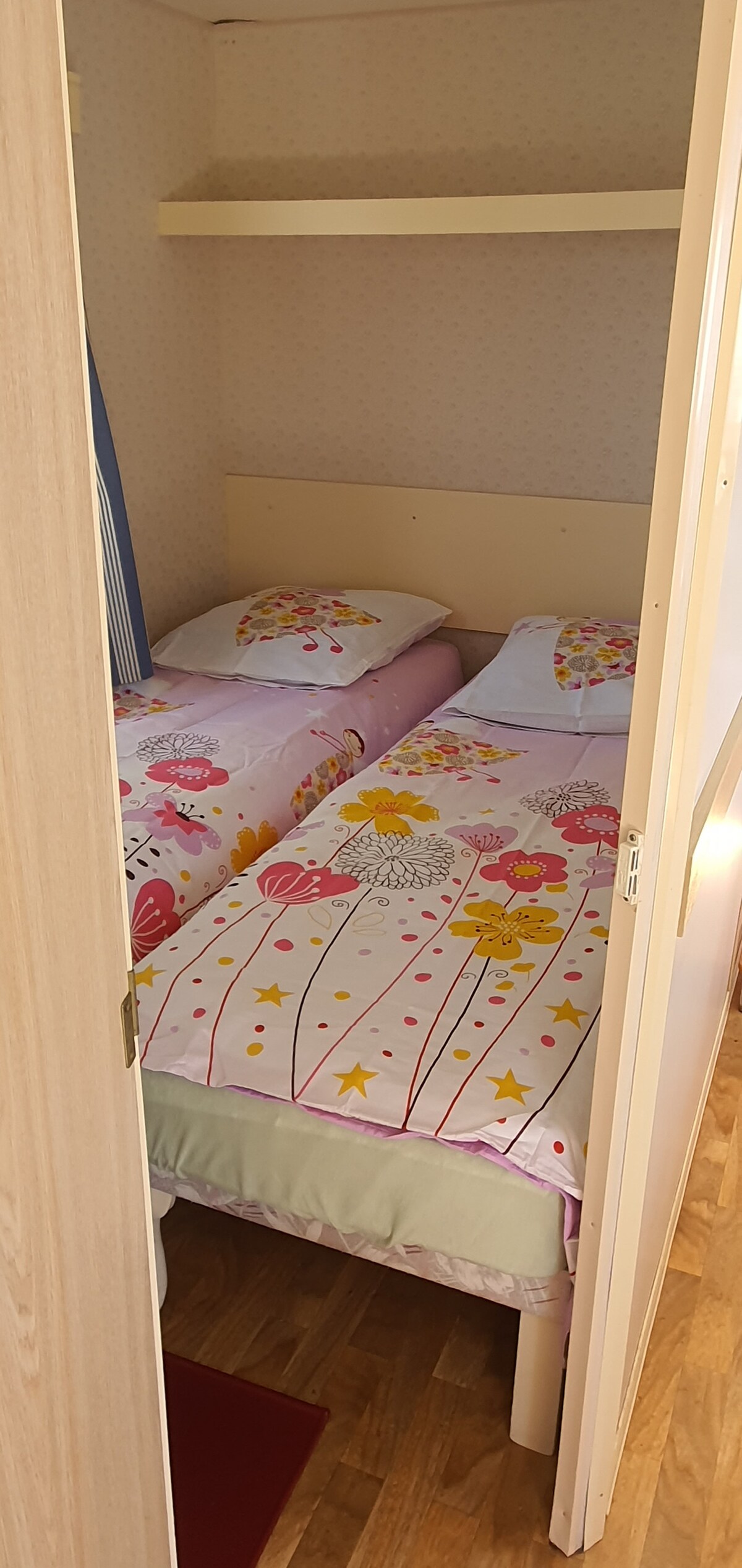 Pequeña casa de 27 m2, situada en medio de los árboles en un entorno tranquilo. Para acceder a ella, deberá caminar por un camino durante 200 metros cuesta arriba. La casa consta de una sala de estar con sofá cama, una zona de cocina, un dormitorio y un baño con inodoro seco. Desayuno no incluido, pero ofrecemos comidas caseras. La potencia máxima es de 800W: compruebe sus dispositivos antes de venir. Nos comunicamos exclusivamente a través de mensajería/correo electrónico, el teléfono no capta aquí.