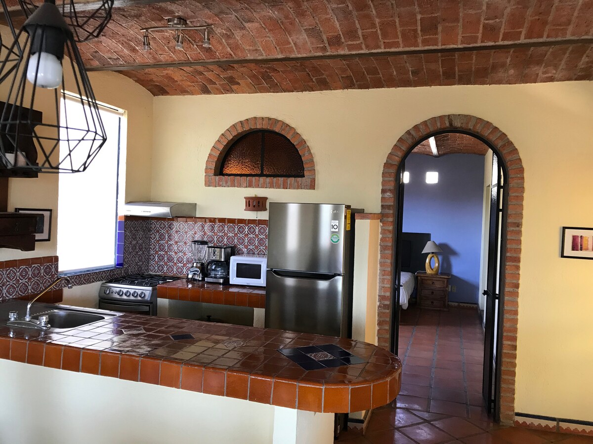Departamento tipo Loft pequeño con todo lo necesario para una estancia placentera -Cocina Privada con Parrilla, Refri, Micro, Utensilios; ahorra y haz tu super -Baño Privado pequeño y espacioso -Escritorio Amplio y Wifi Veloz, trabaja desde aquí -Cama Matrimonial, descansa y ve la Smart Tv en un colchón confortable -Espacio Suficiente, guarda ropa doblada o colgada -Ventanas Amplias, gran iluminación y ventilación Gran Ubicación para Turismo, Viaje de Trabajo, Estudiantes o Salida en pareja