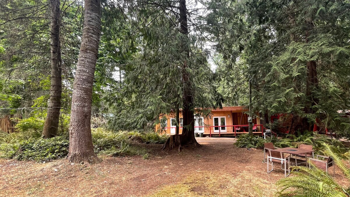 Nueva* Hermosa cabaña personalizada en la costa oeste ubicada en la selva tropical. A poca distancia a pie de Cox Bay y Chesterman Beach. Cocina de concepto abierto y sala de estar con techos altos, mucha luz natural e impresionantes vistas a la selva tropical desde cada ventana. Dormitorio principal con cama tamaño king y baño privado con relajante ducha de efecto lluvia. Acogedores rincones de lectura con una maravillosa selección de autores locales y guías de campo. Una escapada verdaderamente única a Tofino, estamos deseando compartir este lugar tan especial contigo.