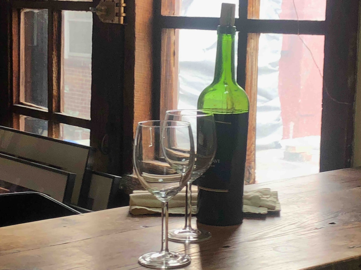 Build a wood fire to stay cozy in this artfully converted warehouse, or sip a coffee alfresco on the lavender lined patio. Exposed brick walls and bleached timber beams recall its 1818 vintage. A curated collection of high-end furnishings, designer lighting fixtures, and an updated kitchen provide modern luxuries. * Guest comfort and safety is our highest priority: In addition to a rigorous cleaning regiment, guests have exclusive use of the entire townhouse and private street level entry.