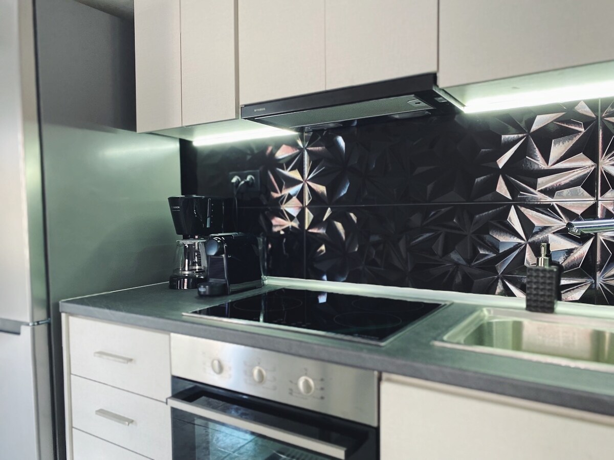 Moderno apartamento en planta baja de 41 m² con aparcamiento gratuito, con 1 dormitorio, salón diáfano y baño. Ideal para parejas o familias con hasta 2 niños. Tiene una cama doble, 1 sofá cama, una cocina totalmente equipada, aire acondicionado, calefacción, conexión Wi-Fi gratuita, 2 televisores inteligentes y un baño moderno con lavadora. El edificio, de una estética especial, se construyó en 2025 y está situado en el centro, a solo 200 m de la playa.