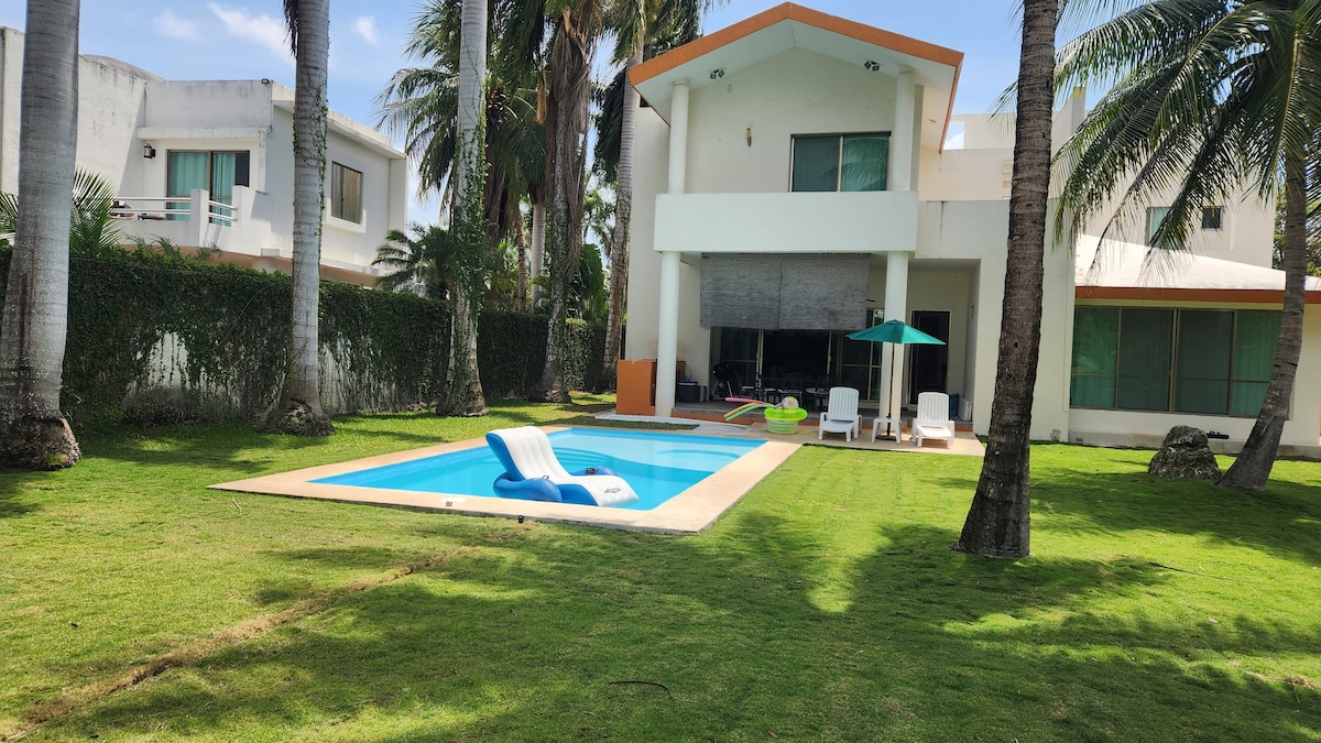 Hermosa casa bien decorada en un barrio tranquilo. A 5 minutos del mercado, a 10 minutos del centro de la ciudad y a 15 minutos del aeropuerto y de la playa en la Zona Hotelera. Cuenta con piscina y un bungaló para comer fuera. También puedes disfrutar cuando estás en temporada (mayo-julio) de árboles de mango, coco y plátano.