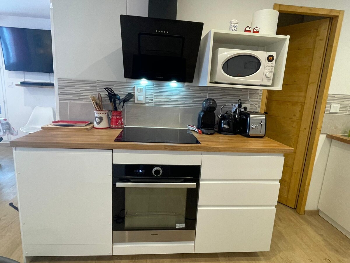¡Magníficas vistas de la montaña! Apartamento de 3 habitaciones para 4 personas, con hermosa terraza, situado en la última planta con ascensor en una residencia con acceso gratuito a la piscina cubierta climatizada y baño turco (abierta del 1 de julio al 31 de agosto y del 15 de diciembre al 30 de marzo) Salida y regreso a esquiar Cerca del centro y de las tiendas. Totalmente equipado. Todo Confort. Ideal para pasar buenos momentos en familia
