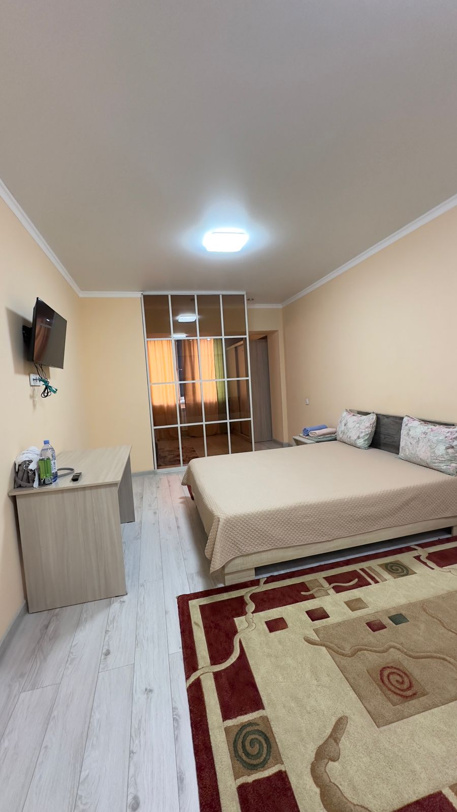 Que tengas una buena estancia en nuestro precioso estudio. Acogedor y funcional estudio en la ciudad de Almaty para 2-4 personas. Se admiten bebés y niños. El alojamiento entero recién reformado tiene todo lo necesario para que tu estancia sea cómoda. El apartamento tiene cocina totalmente equipada, wifi y todas las comodidades necesarias. El apartamento está situado junto al gran centro comercial con una gran variedad de restaurantes, cafeterías y un supermercado. La calle principal City Walking está a 10 minutos a pie.