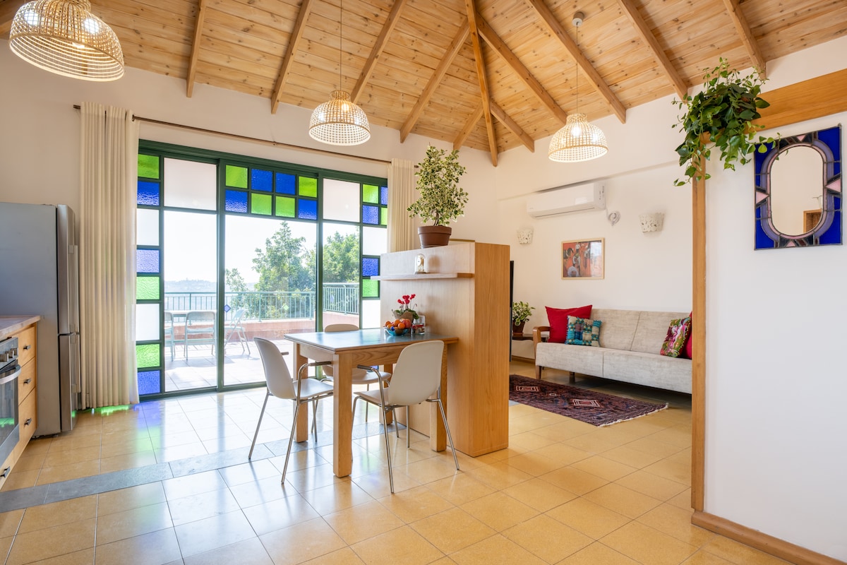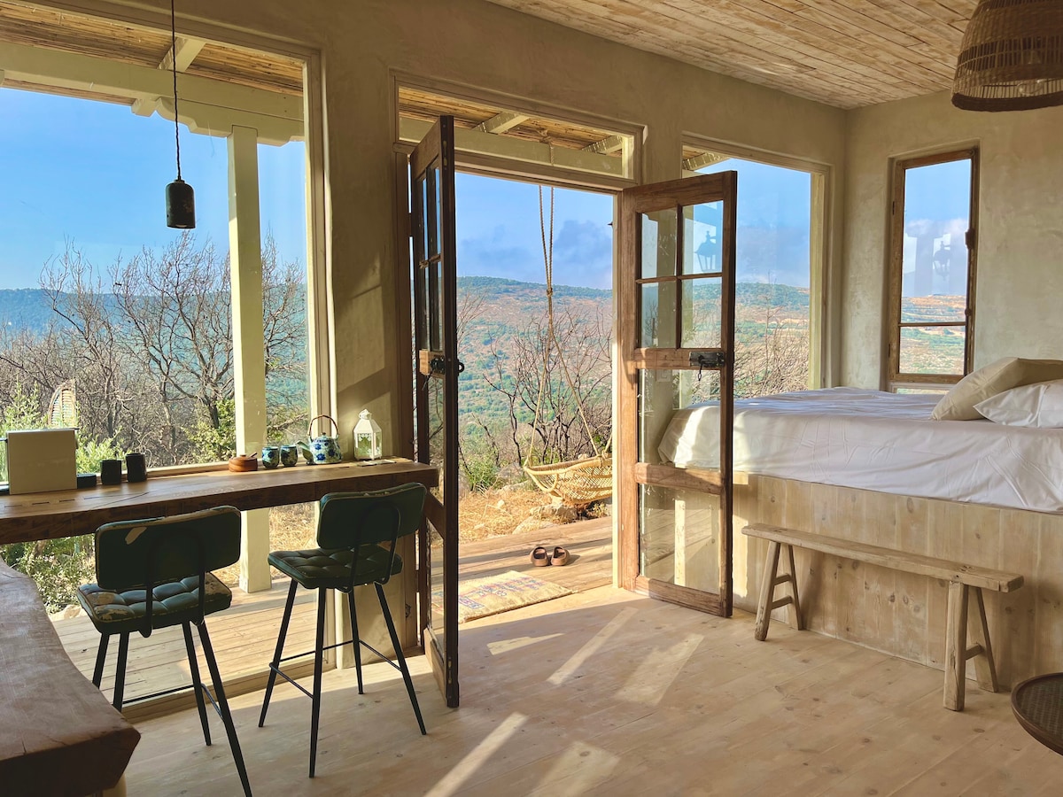 Un hermoso y espacioso loft con una vista increíble de un bosque natural. Un sentido de la vida dentro de la naturaleza en total privacidad. Ubicado en el valle de Jezreel en la Baja Galilea. El loft está bien equipado y cómodo para una larga estancia. Hay varias zonas de estar encantadoras en el jardín y en la terraza. Cerca de hermosas rutas de senderismo y bicicletas. Un gran lugar para artistas y escritores.