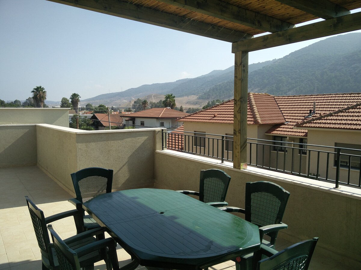 Un apartamento grande y cómodo: 2 dormitorios privados, sala de estar, cocina totalmente equipada,baño y gran balcón con vistas a la montaña Carmel. Excelente para familias con niños, parejas y grupos. A 15 minutos de Haifa, a 20 minutos de Nazaret, a 30 minutos de Tiberíades , a 1 hora de Tel Aviv y a 5 minutos de la autopista de campo, a 10 minutos de la estación de tren y al transporte público accesible .