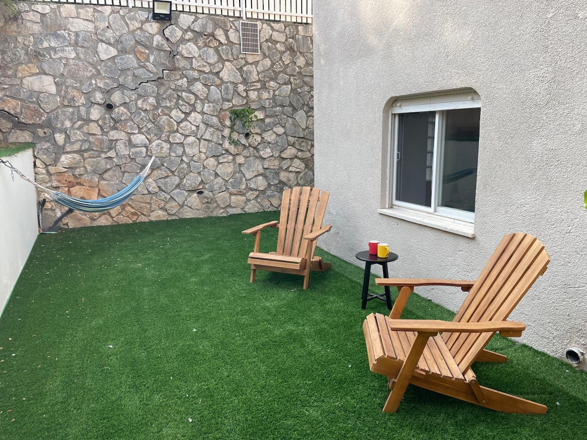 ubicado en Kiryat-Tiv'on con las fascinantes vistas a la montaña Carmel. Esta es la ubicación perfecta para los viajeros que desean explorar el norte de Israel y disfrutar del senderismo, el ciclismo, la buena comida y la relajación. Tivon se encuentra entre Haifa y Nazaret, a aproximadamente una hora en coche del mar de Galilea. Casa de 1 dormitorio con piscina y un increíble jardín a 1 minuto de una tienda DE comestibles, una farmacia, una cafetería, un restaurante, un banco+cajero automático y una gasolinera. Ubicación perfecta para una salida rápida y fácil a las carreteras principales.