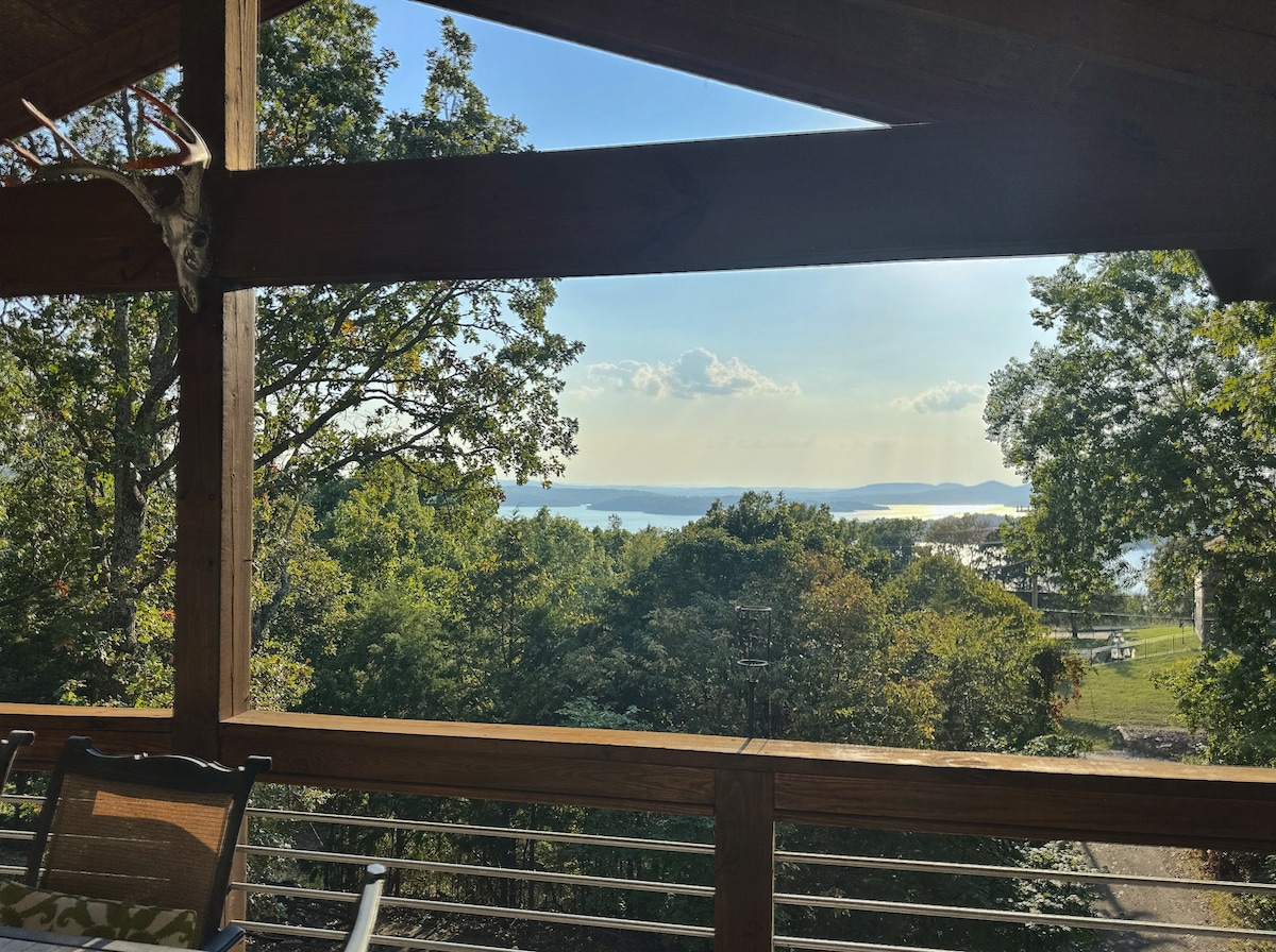 Esta casa aislada de 3 niveles junto a un lago te ofrece unas vistas increíbles, paz y serenidad. Estamos ubicados a 20 minutos en coche de Shell Knob. Los anfitriones ocupan el nivel principal. El nivel inferior es totalmente privado con su propia entrada. El nivel superior está separado con dormitorios privados y una bonita sala de estar que se puede utilizar para huéspedes adicionales o una reserva separada. El lago Table Rock está en la puerta trasera para nadar, pescar o simplemente relajarse. Disfruta de la paz en nuestras 2 amplias cubiertas. Cocinaré comida alemana bajo petición.