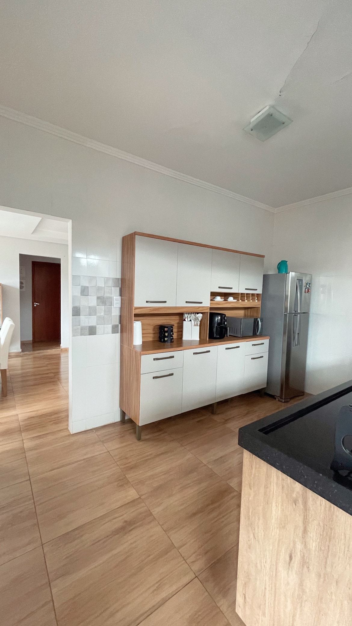 - Ubicada en el centro de la ciudad - Barrio tranquilo y sin mucho movimiento de coches y personas. - A 2 km de la entrada del Parque Nacional de Caparaó. - Supermercado con panadería cerca (200 mts). - Dos habitaciones, una con una cama doble y otra con una cama doble y una individual. -Tiene garaje -Sala con sofá, TV y Wi-Fi - Cocina completa con estufa, nevera, microondas, platos, cubiertos y más, fregadero y mesa. -Cuarto de baño con ducha eléctrica. -Balcón trasero con taque y tendedero. - Vista a las montañas.