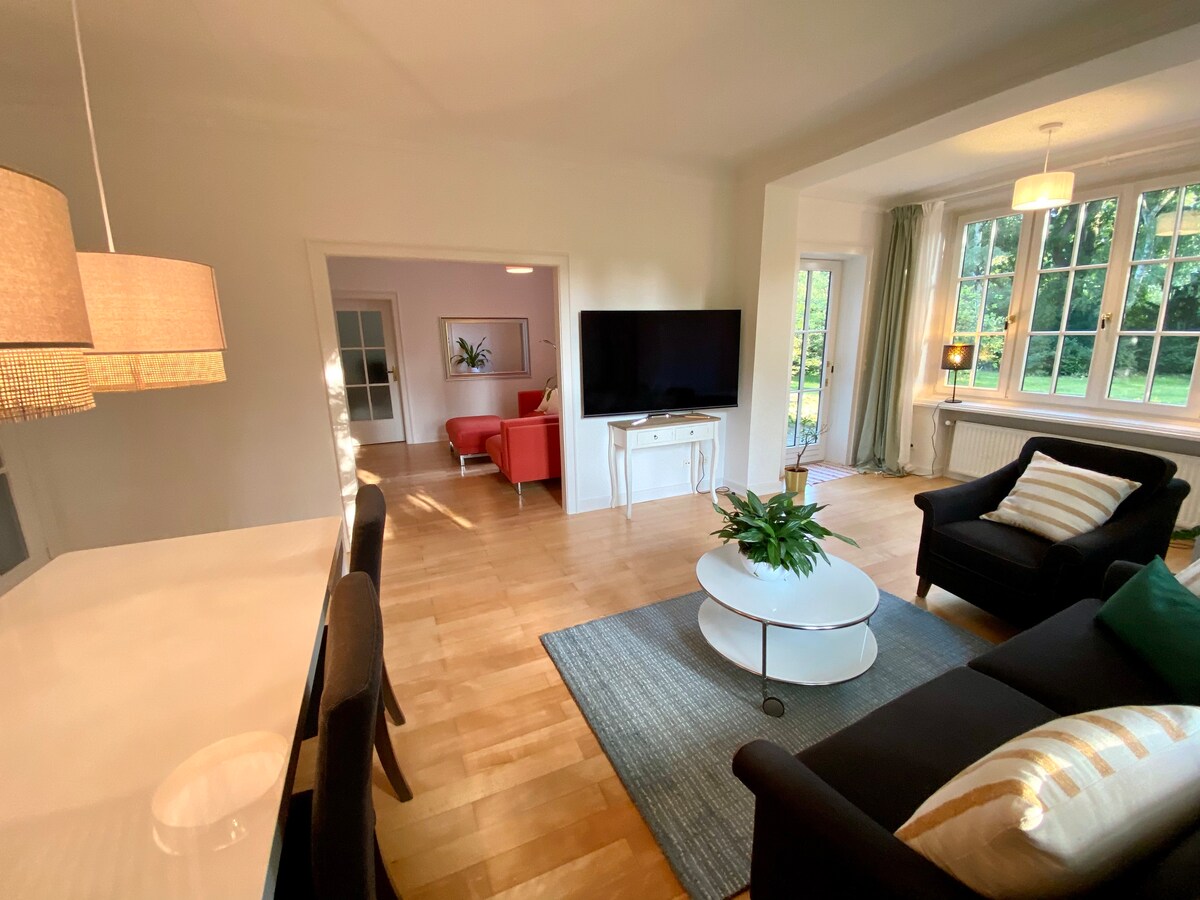 Este espacioso alojamiento en la casa de un arquitecto cautiva sobre todo por el piso escalonado inundado de luz abierta con una gran terraza en la azotea y una chimenea abierta, abierta y giratoria de 360 grados. La parte delantera de la ventana se puede abrir por completo. La refinada cocina cuenta con una máquina portafiltros y un sistema profesional Bora con Teppan. El sistema de sonido envolvente ofrece una experiencia de sonido especial. En el segundo piso están los tres dormitorios y baños y un área de salón abierta.
