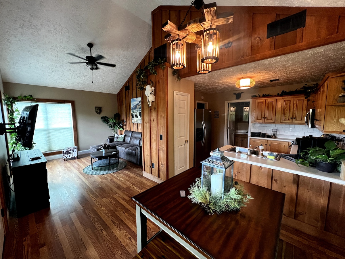 Encuentra comodidad y relajación en este acogedor apartamento de montaña de 2 dormitorios y 2 baños. Ubicado en las montañas Apalaches, Bearfoot Retreat tiene todas las comodidades que puedas desear para que te sientas como en casa lejos de casa. Con chimenea de leña, vistas al lago y al deslizamiento de rocas, con un bar al aire libre con vistas al bosque, este es el refugio que has estado buscando, con todas las comodidades modernas; una cafetería, TV inteligente de 70 pulgadas, hogar inteligente y mucho más.